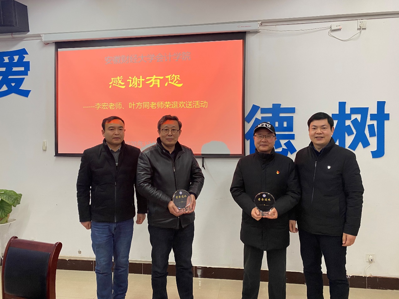 2020年12月30日下午,会计学系全体教师在学院609会议室欢聚一堂,为光荣退休的李宏与叶方同两位老师举行欢送座谈会,学院主要领导莅临了此次座谈会。