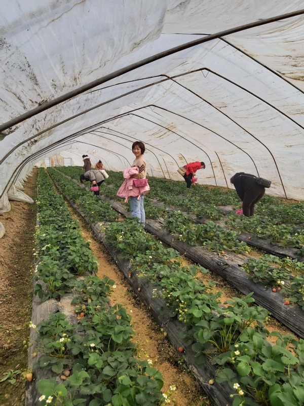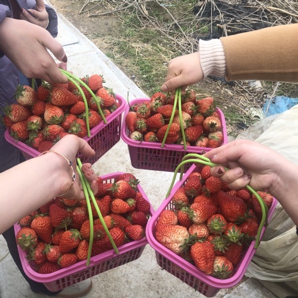 抵达生态园,大家呼吸着田园新气息,享受着早春的快乐。草莓大棚里的草莓压弯了枝头,大家弯着腰,踏着脚底的湿泥,采起一个个又大又红的草莓。不知不觉一个多小时过去了,每个人都收获颇丰。大家拎着自己的劳动成果在田间地头拍照留影。