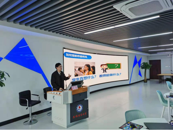 王程首先从教学角度阐述了何为良好师德师风,并从教学中求真,生活中求善,社会中求美方面说明了师德的具体化表现,以及严谨、努力、文明的应有师风。随后就师德师风、教学活动和教师生活等方面,结合自身经验阐述了教学过程中应注意的问题,表达了理论积累、案例精选、经验借鉴等基础性工作的重要性,并分享了自己在教学竞赛过程中的经验技巧。