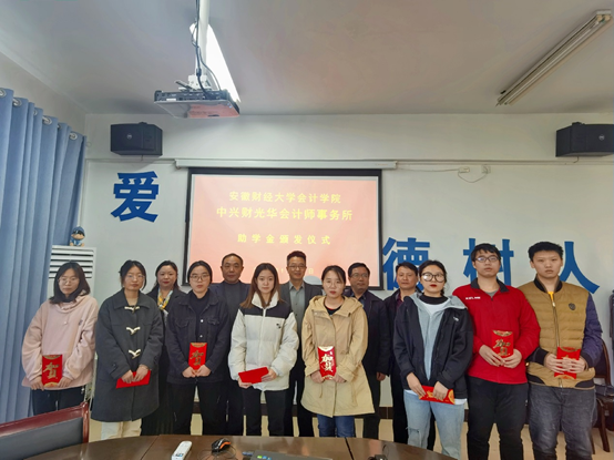 11月10日上午,“中兴财光华”助学金颁发仪式在学院会议室举行。中兴财光华会计师事务所管理合伙人、安徽分所所长陈发勇,安徽分所副所长、党支部书记陈刚,安徽分所办公室主任王劼,3044am永利集团3044noc副院长刘博、安广实教授以及部分师生代表参加了活动。仪式由学院资助负责人张莉主持。