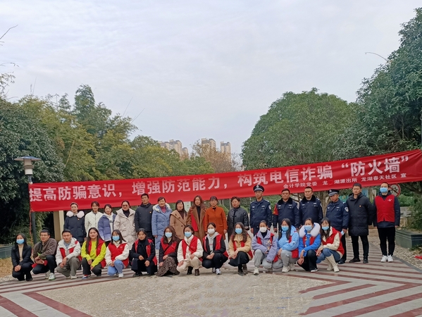 为增强广大居民对诈骗的防范意识,贯彻落实党史学习教育我为群众办实事、办好事的理念,3044am永利集团3044noc党委联合共建单位龙湖派出所、龙湖春天社区,于12月8日下午在龙湖春天小区举办了“提高防骗意识,增强防范能力,构筑电信诈骗‘防火墙’”反电诈宣传主题志愿服务活动。