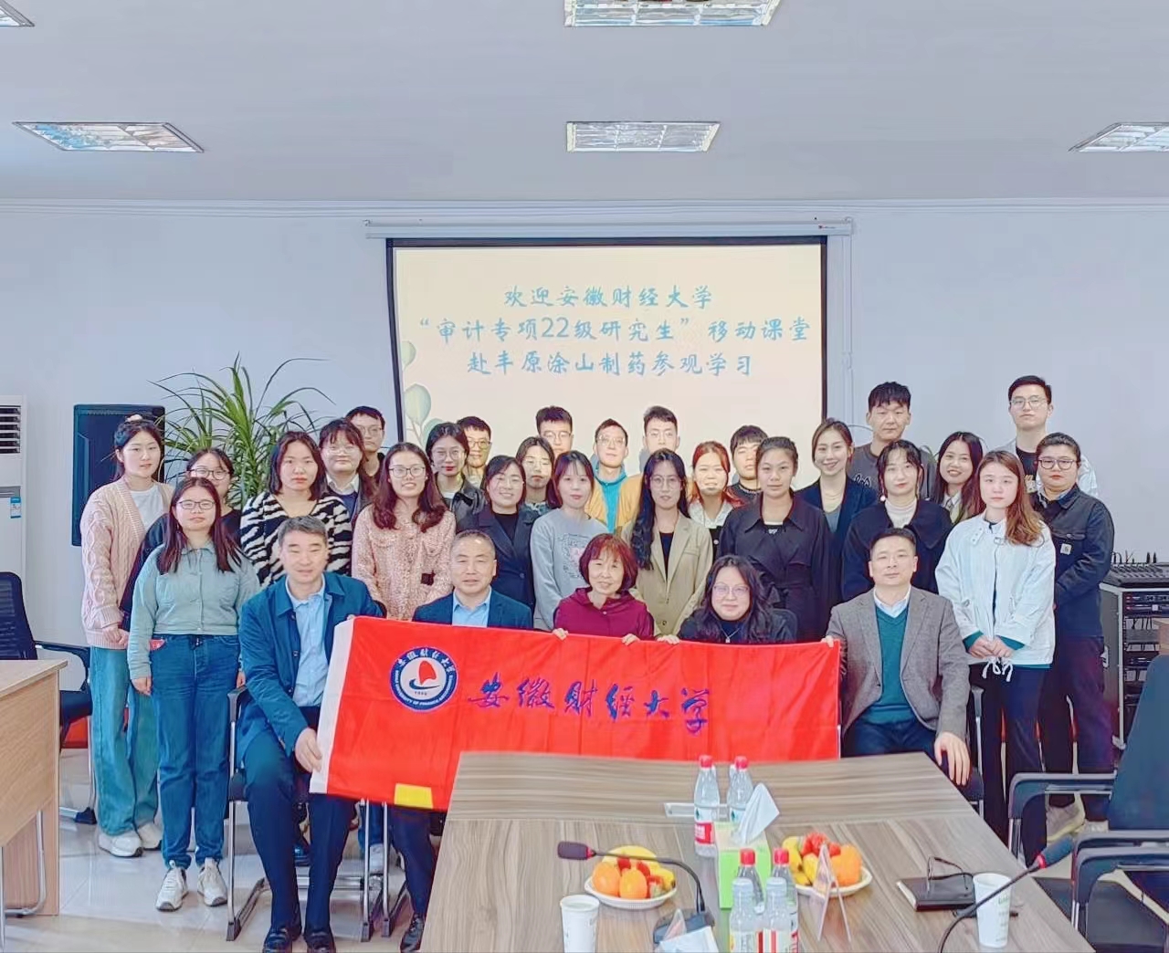 为进一步深化应用型人才培养,提升审计专硕培养质量,促进校企深度合作,4月2日上午,26名3044am永利集团3044noc审计专硕2022级研究生在陈矜和杜建菊两位教授的带领下前往丰原涂山制药公司开展实践教学活动。