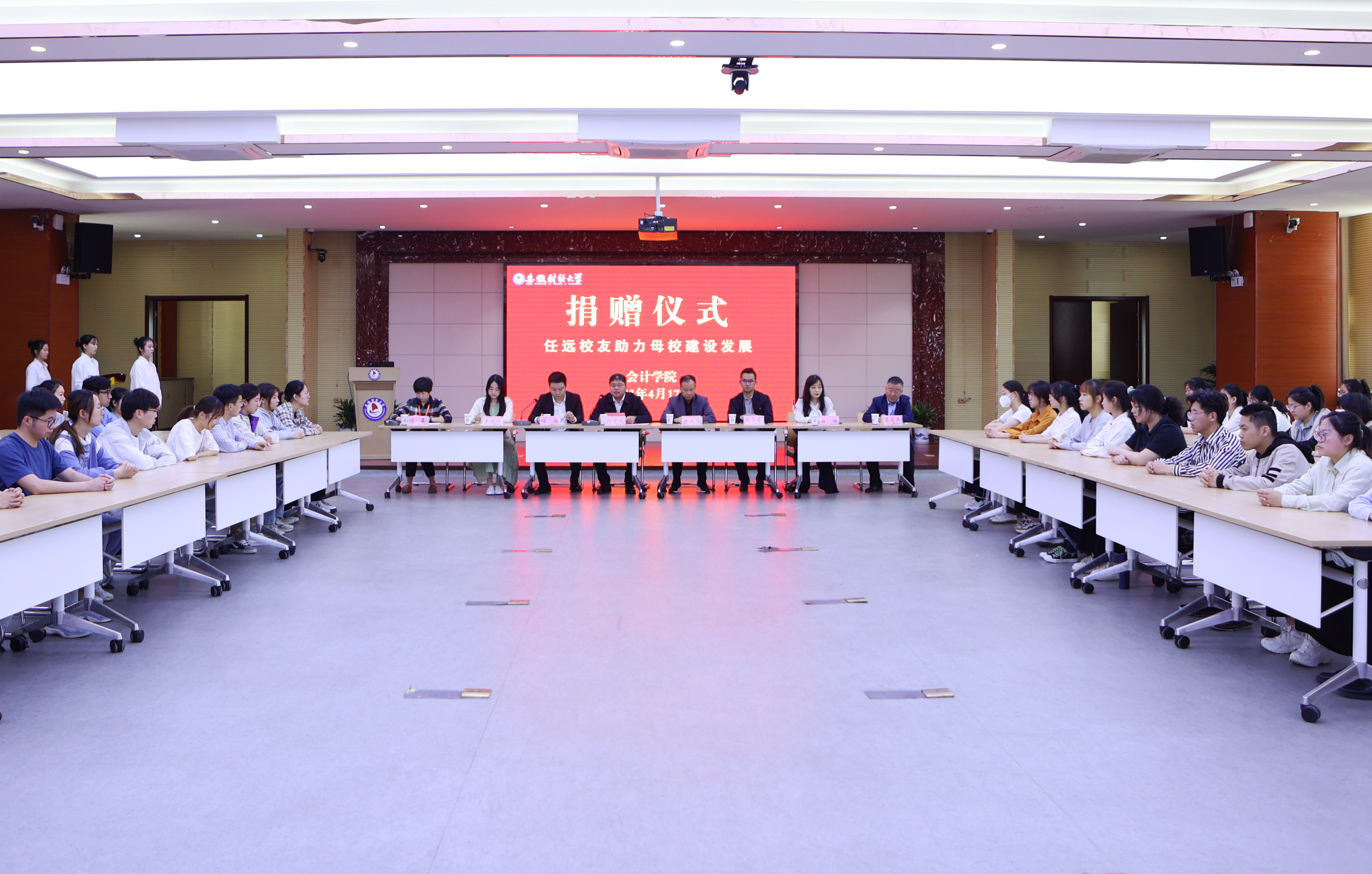 何贤杰简要介绍了学院近年来的发展情况和深厚的专业底蕴,对任远校友的慷慨捐赠表示由衷感谢,对其在自身事业发展的同时热心校友工作,襄助母校建设的反哺之举表达诚挚敬意,并高度赞扬任远校友在公司创立发展过程中卓越的战略眼光和不断探索的创新精神。本次捐赠活动是物质上的表达,更是精神上的滋养和情感上的激励。他表示,校友是学校宝贵财富,校友们的优秀事迹和成功经验是激励在校学子成长成才的典范,也希望越来越多的会院人传承和弘扬这种大爱。学校历来重视校友工作,学院将着力全面加强校友合作,一如既往地为国家、社会培养出知感恩、肯奉献、担当有为的新时代青年。